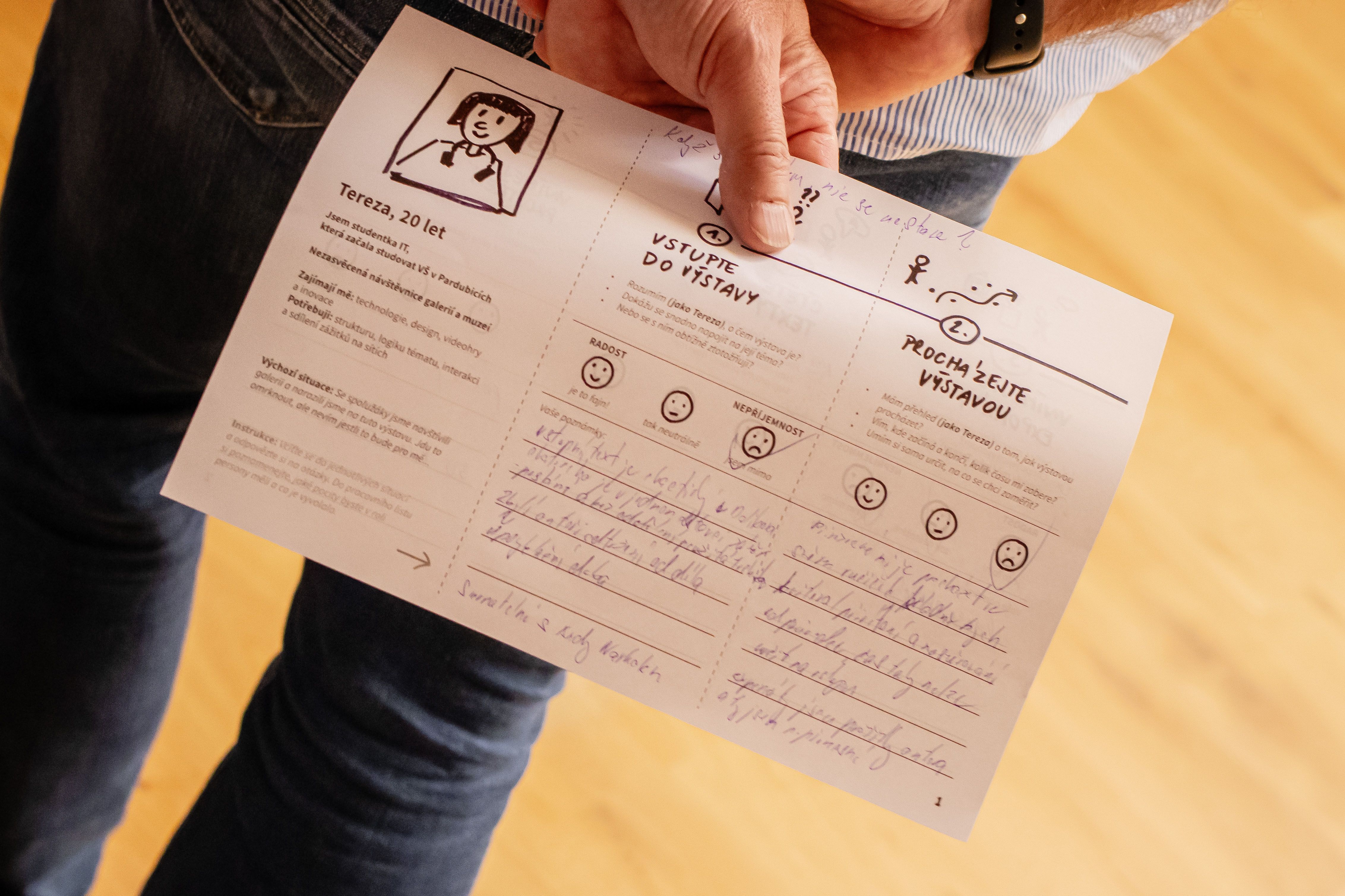 For the workshop, we created three different personas with varying relationships to visiting museums and galleries: Eva the teacher – a regular visitor, Johann the tourist, who is an occasional visitor, and Tereza the student, who visits museums and galleries only occasionally.